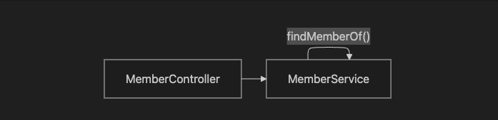 멤버서비스에서 계속해서 자기 참조가 일어나는 구조입니다. 서비스 내부에서 자기 자신을 반복적으로 호출하는 패턴은 ‘서비스가 스스로를 유틸 클래스처럼 사용하는’ 모습입니다. 이는 단일 책임 원칙을 생각할 때 어색합니다. 지금은 프라이빗 메서드가 하나 뿐이고 단순한 로직입니다만,,, 로직이 길고 복잡해 진다면? 프라이빗 메서드가 계속해서 늘어난다면? 이런 고민에 벌써 머리가 아파옵니다.