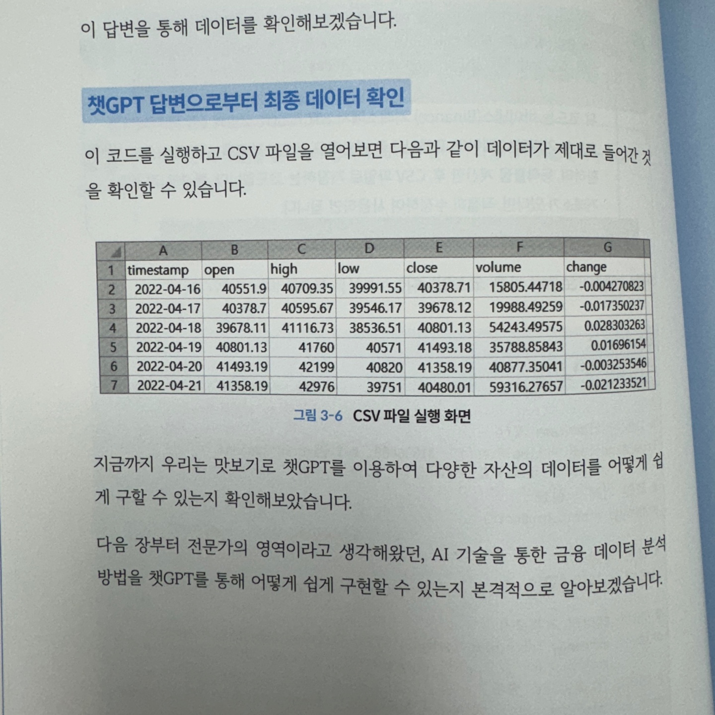 책에서는 챗GPT를 활용하여 주식, 암호화폐 등 다양한 금융 데이터를 수집하고 분석하는 방법을 구체적으로 설명하고 있어요!