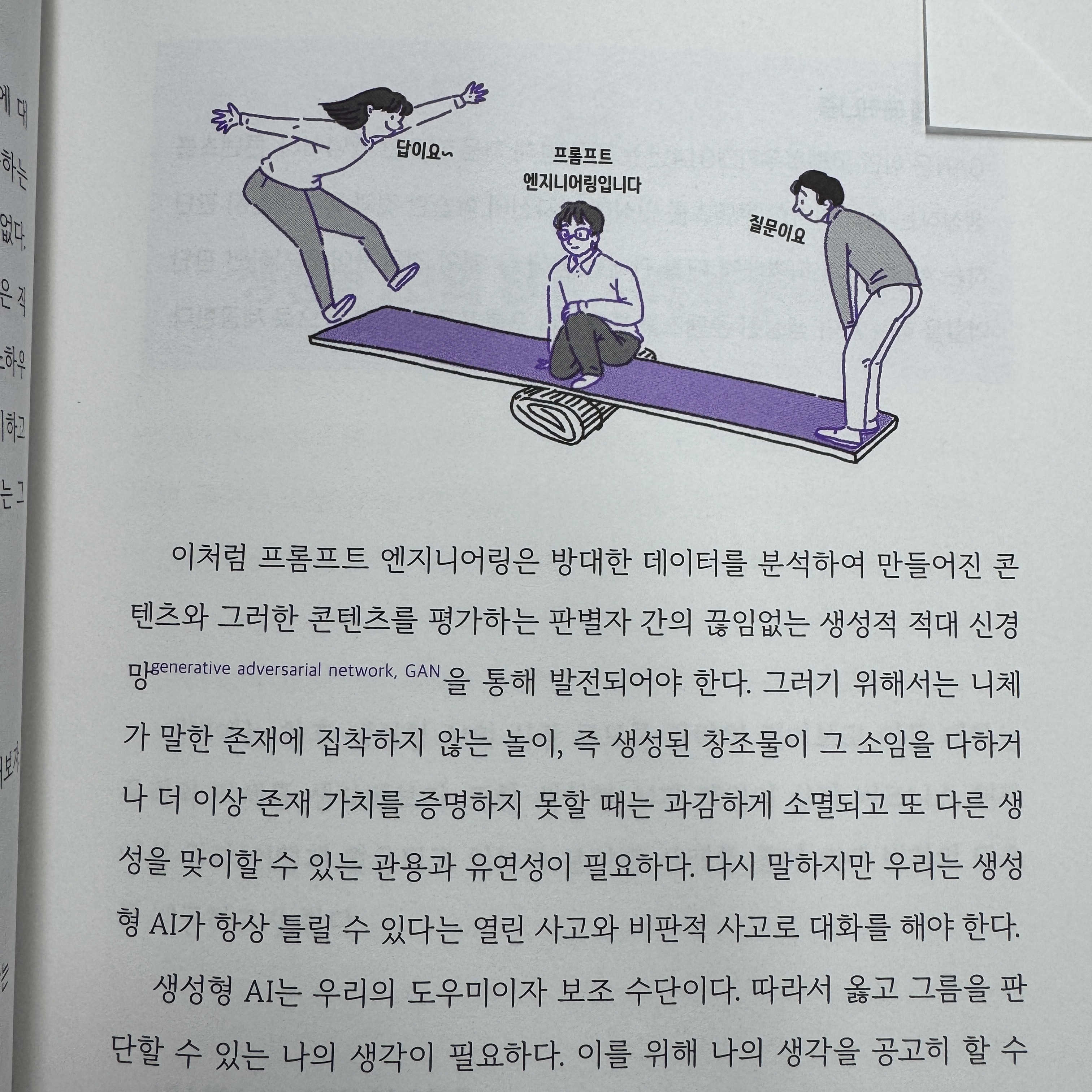 이 책이 특히 돋보이는 점은 철학적 성찰을 포함하고 있다는 점입니다. "AI의 자아의식"이나 "테세우스의 배 딜레마"와 같은 장들은 AI를 단순한 도구로!