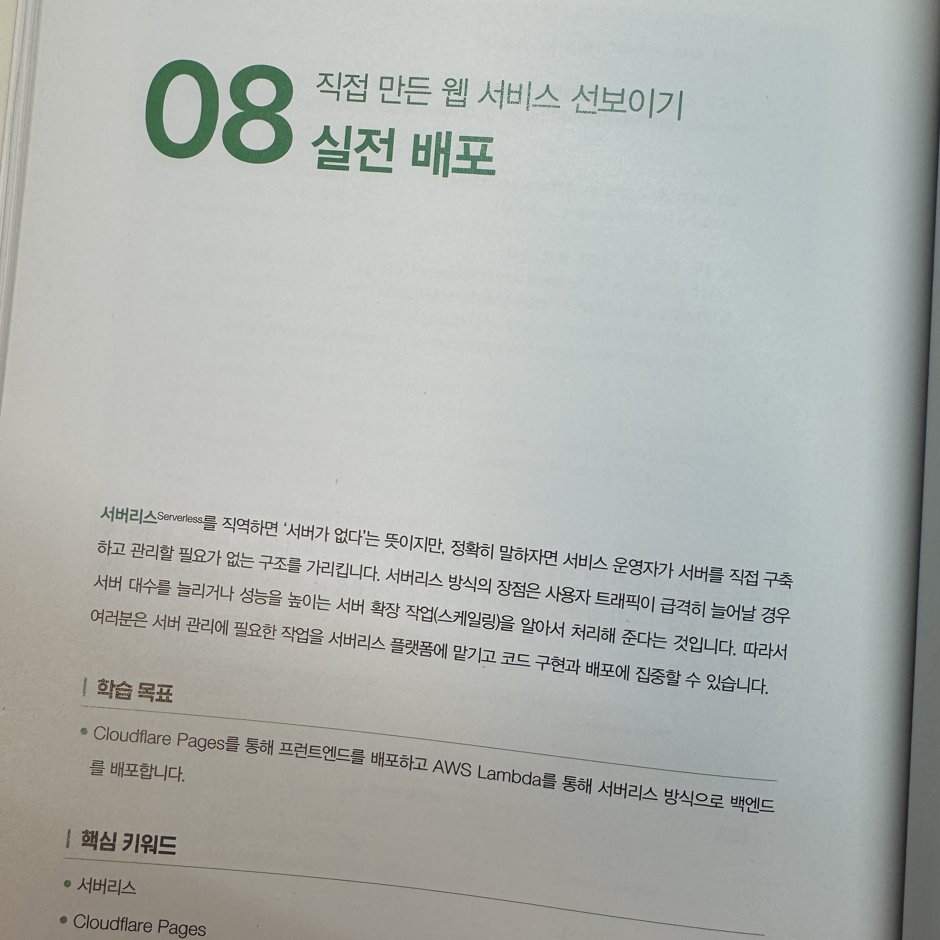 이 책은 아이디어에서 시작해 프런트엔드, 백엔드 개발, 그리고 배포에 이르기까지 실제 서비스를 만드는 데 필요한 모든 과정을 담고 있다. 특히 내 노트북에서만 동작하는 서비스가 아니라 프론트/백엔드 배포를 다루고 있는 부분이 매우 만족스러웠다.