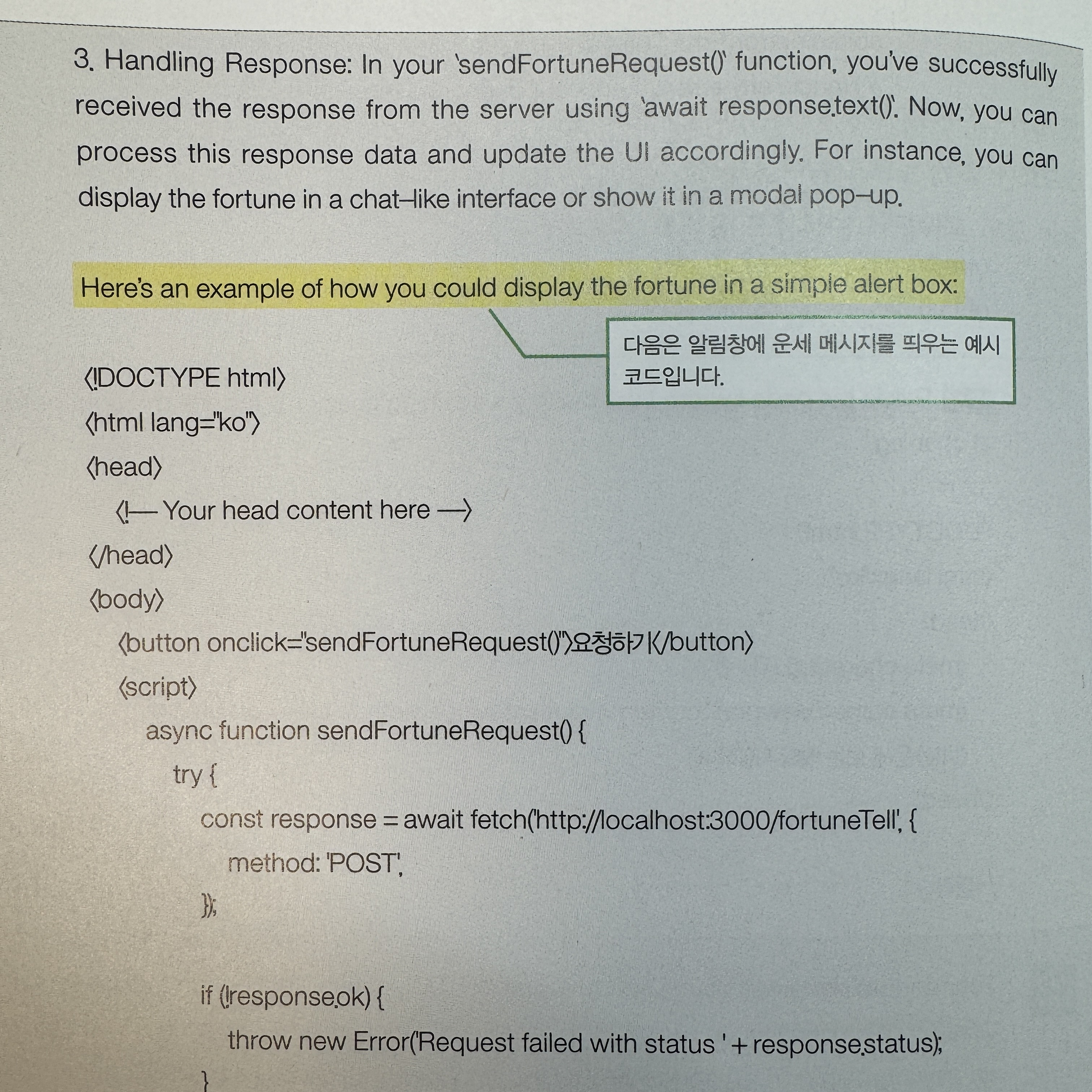 책에서 나오는 내용과 똑같이 open ai node api library 내 usage를 복사하더라도 코드가 조금 변경되어 (변수명, console부분 등) 수정이 필요하다.