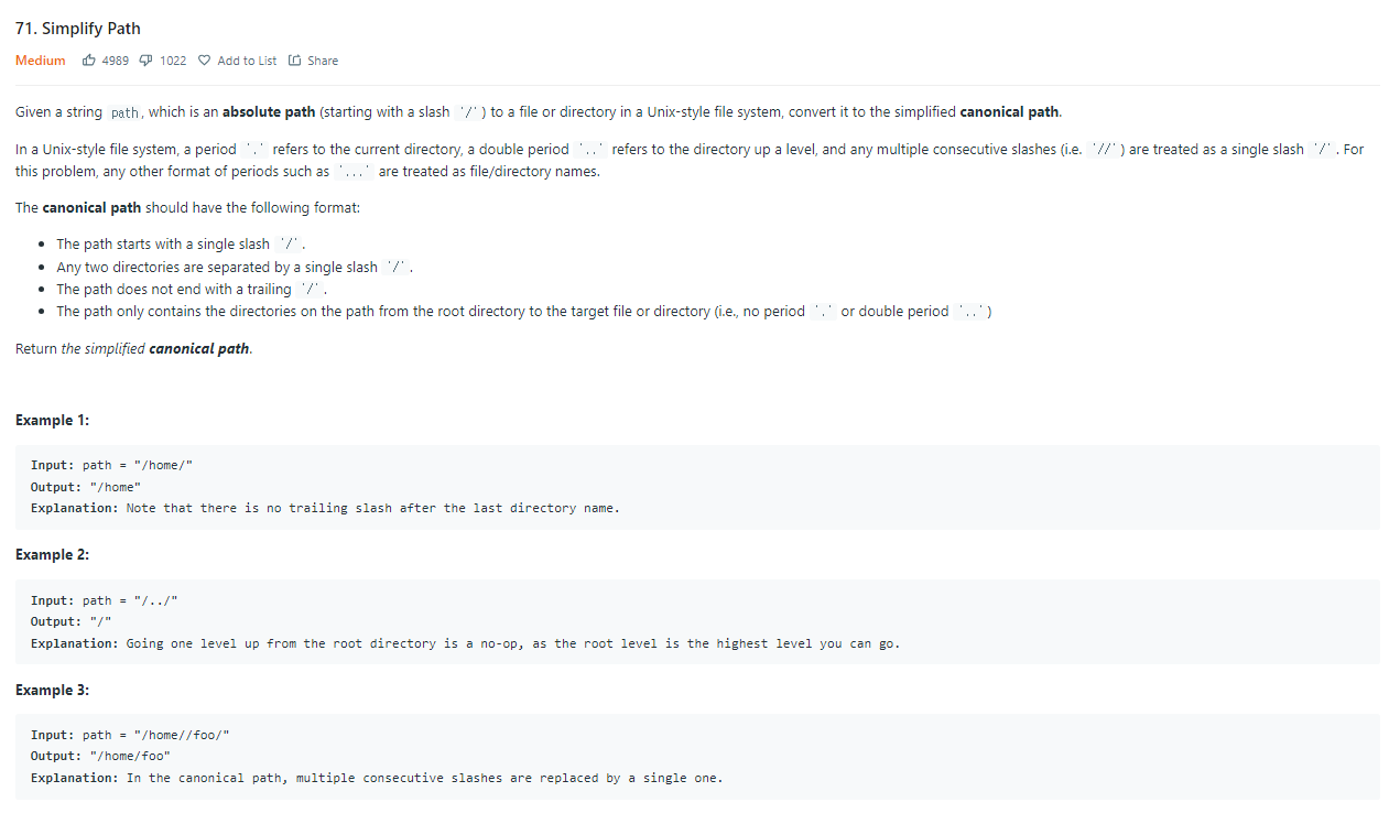 1.입력 경로를 데크(queue)로 변환하여 문자열을 하나씩 처리한다.(파이선 Split 함수를 사용했으면 이렇게 할 필요가 없이 효율적으로 처리했을 듯하다)