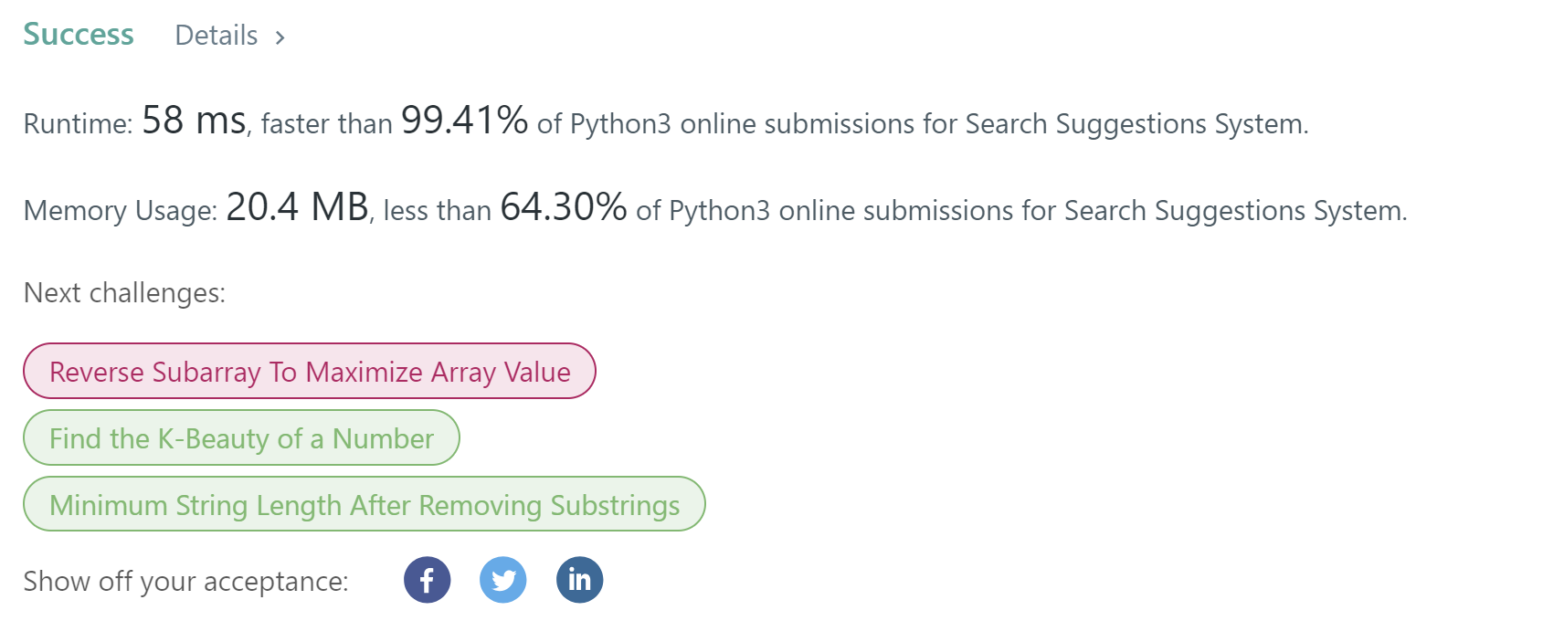 이 문제는 주어진 제품 목록에서 주어진 검색어에 대한 제안을 반환하는 것으로, 각 검색어 접두사에 대해 최대 세 개의 제안을 만들어야 합니다.