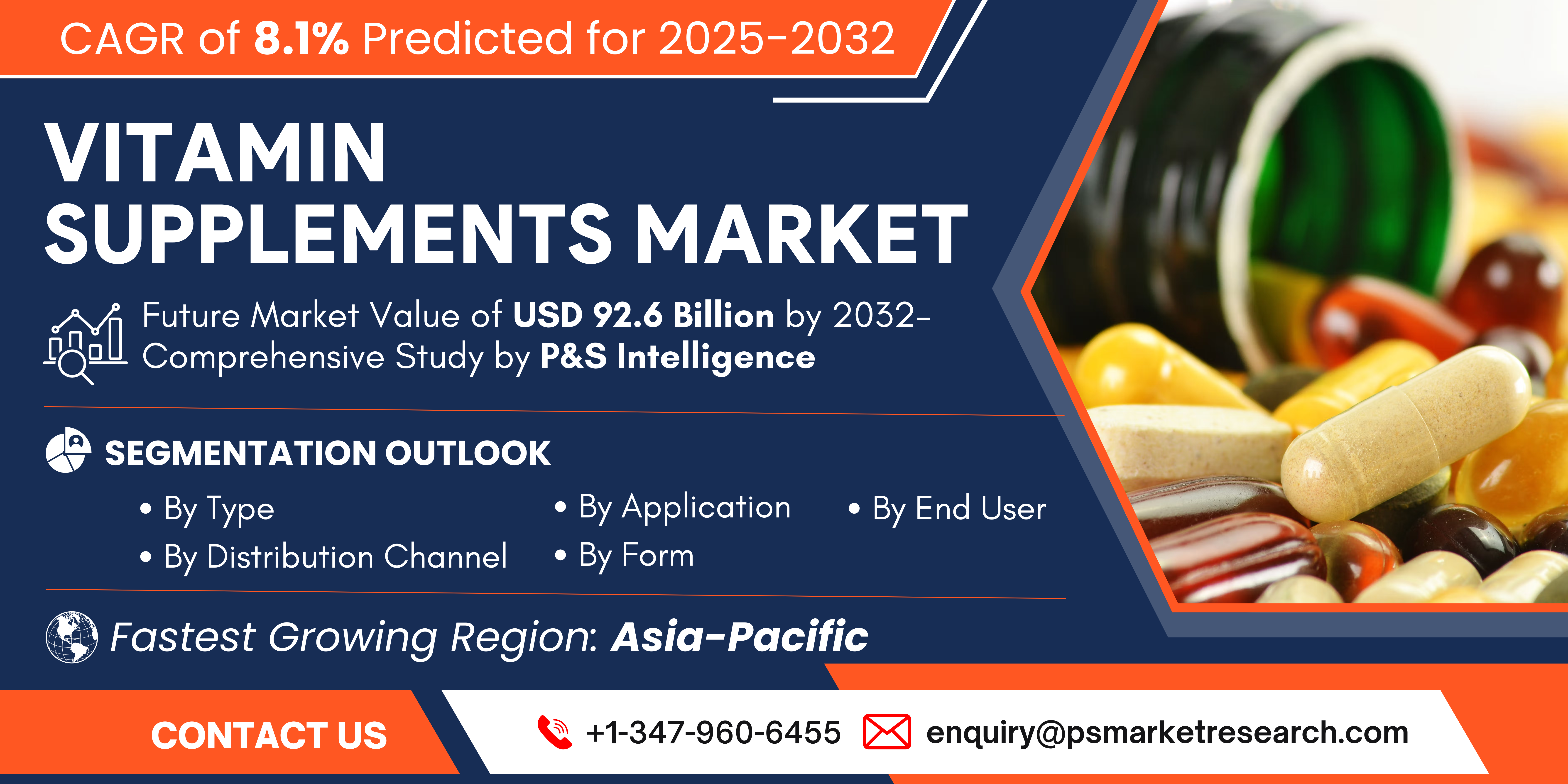 The global vitamin supplements market is set for substantial growth, with projections indicating an increase from USD 50.2 billion in 2024 to USD 92.6 billion by 2032, reflecting a compound annual growth rate (CAGR) of 8.1% during the forecast period.