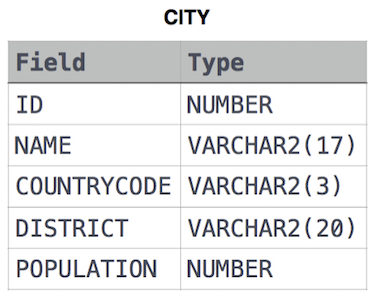 The CITY table is described as follows: