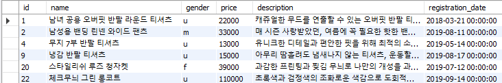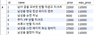 우선 상품 정보가 담긴 item 테이블에서 id, name, price 컬럼을 조회하자.