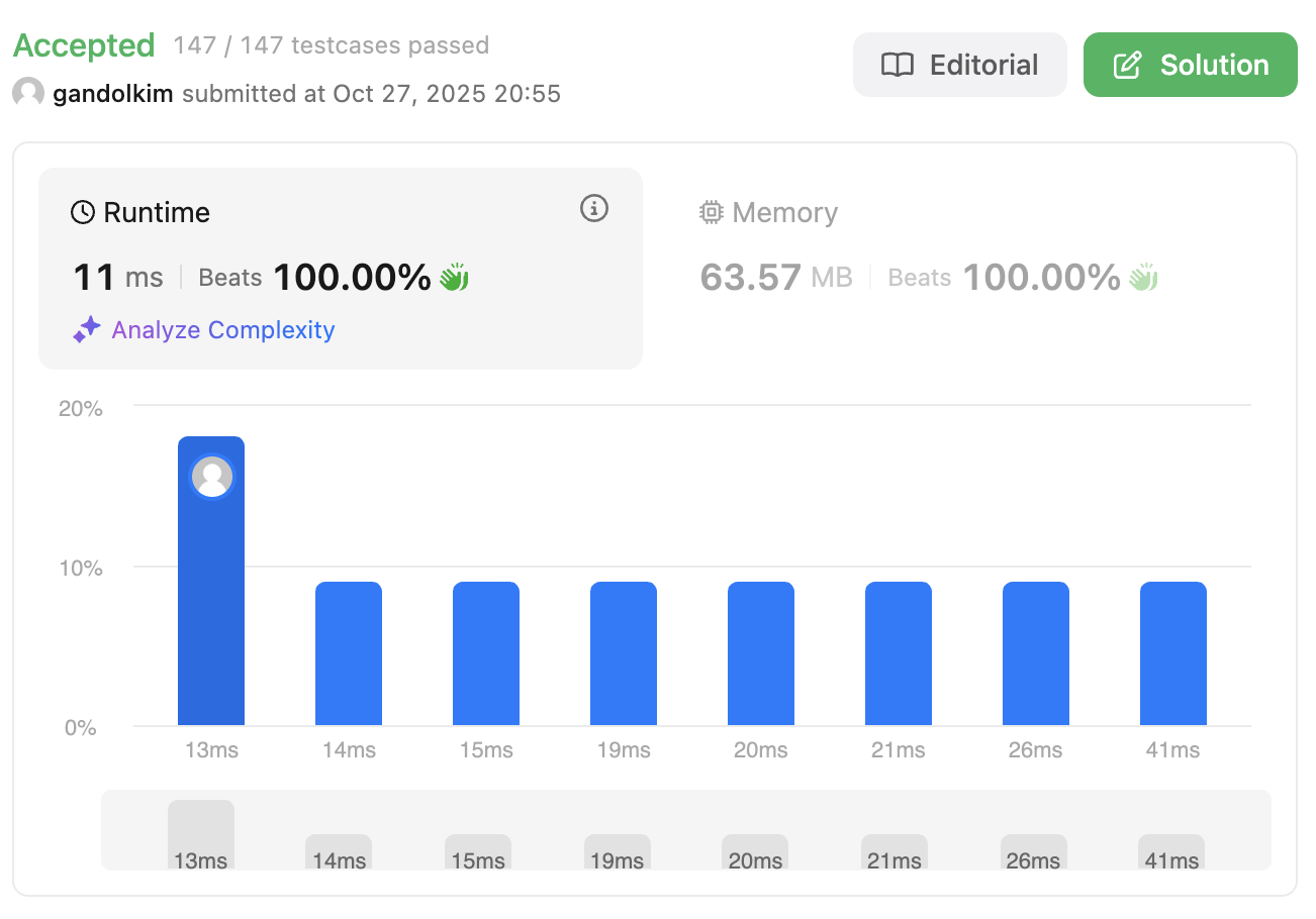이 문제가 왜 "medium" 레벨인지 의아해하며 통과.