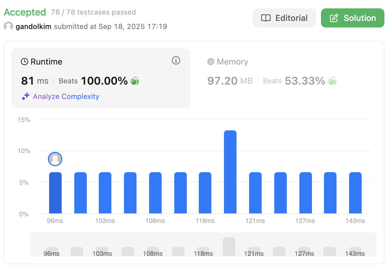 처음엔 제약조건이 단순히 음식 배열의 길이가 10^4 이길래 N^2 연산이 걸려도 10^8이니까 O(N) 만 해줘도 되지 않나? 라고 하면서 풀었다.