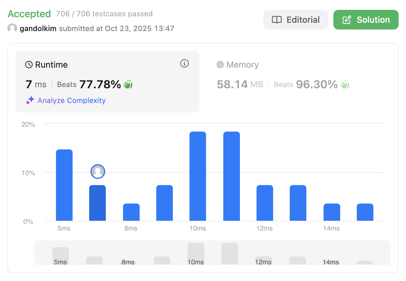 예전에 풀었던 배열에서의 삼각합 구하기 에서의 풀이처럼 새로 구하는 값이 원본배열보다 짧아지는 경우 해당 배열을 재사용하면 공간복잡도를 아낄 수 있다. 길이를 1 씩 줄여가면서 인접한 두 수의 모듈로 연산을 진행했다.