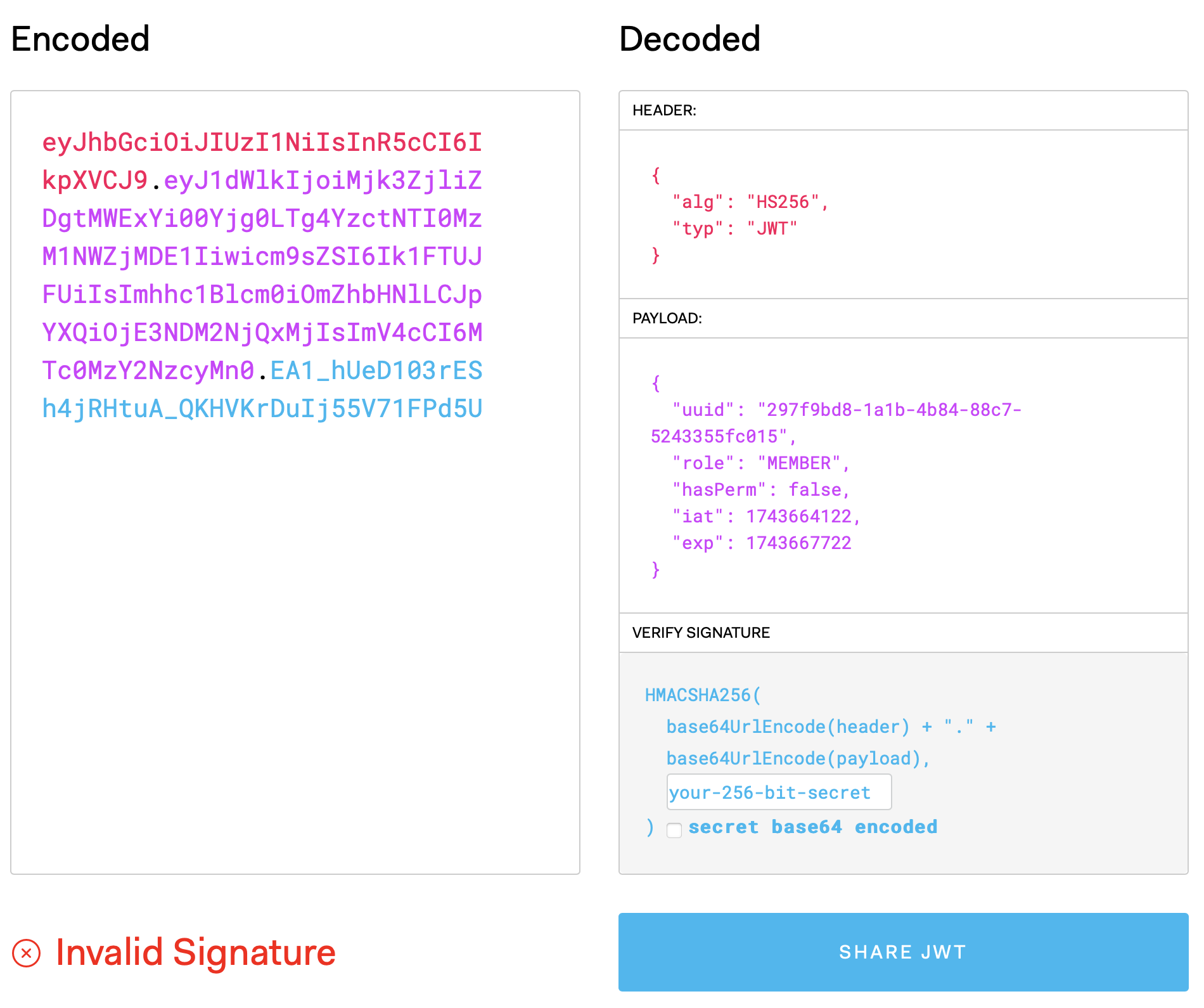 JWT.io 에서 디코딩해보았다