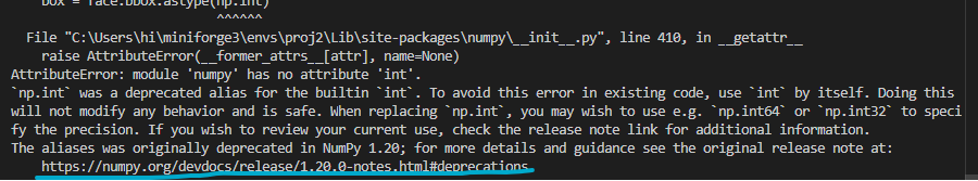 로 수정하면 임시로 사용할 수 있다. 본질적으로는 더이상 numpy가 데이터 타입을 단순히 int