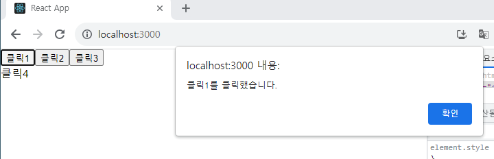 <button onClick={ (event) =>click(event)}>클릭1</button>