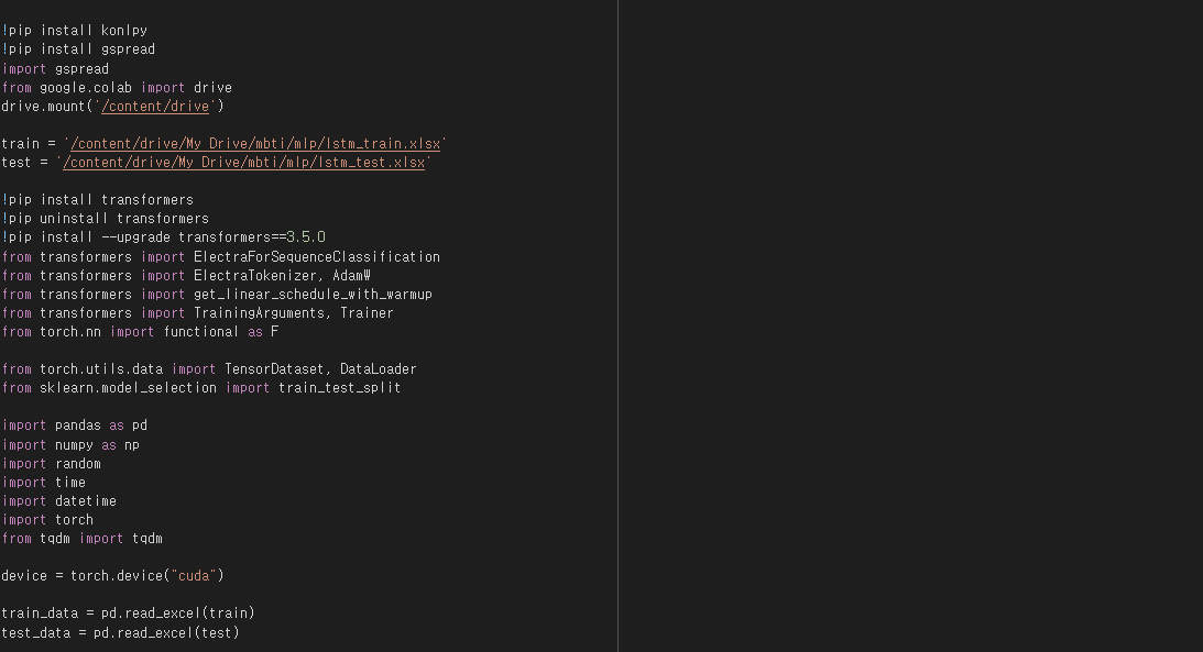 (지금 예상으로는 BERT-LSTM-MLP 순으로 높은 정확도를 보일 것 같은데, 실제로도 그럴지 알아보면 좋을 것 같다!!)
