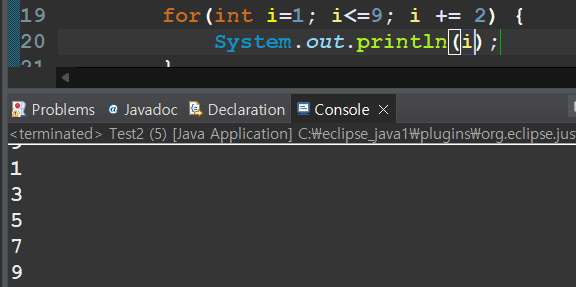 - 1, 3, 5, 7, 9 / 2씩 증가하는 값 출력