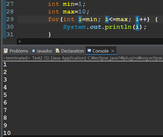 - int형변수 min/max 정의해서 1~10 출력