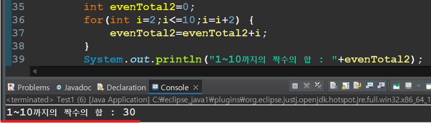System.out.println("1~10까지의 짝수의 합 : "+evenTotal2);