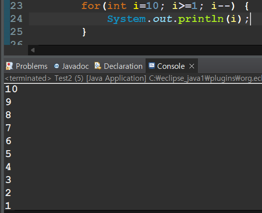 - 10~1, 1씩 감소 출력