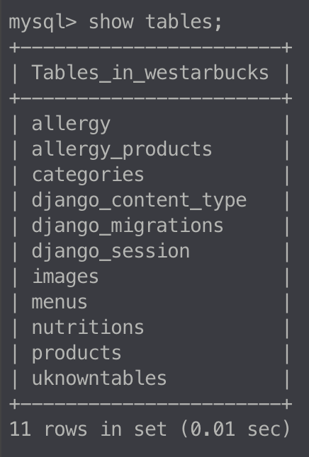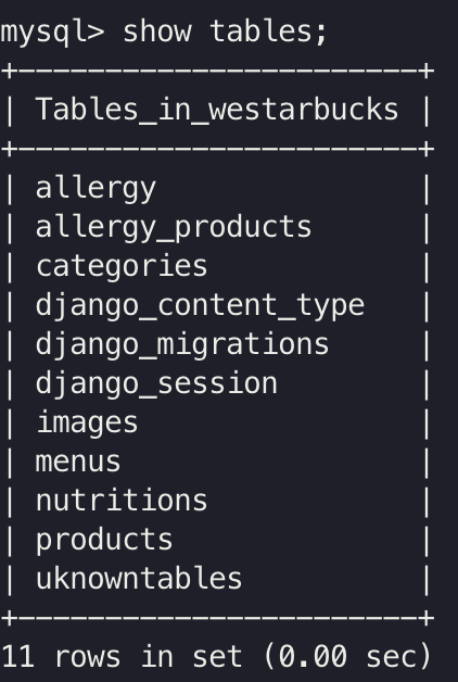 mysql에서 테이블을 지우지 않았는데 최초로 migrate 했을때 처럼 uknowntable이 없어졌다.