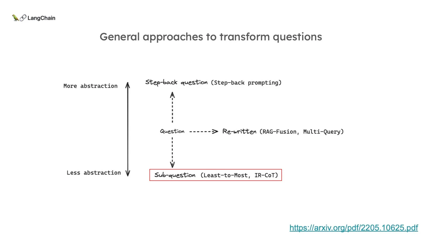 Query Translation은 추상화 정도에 따라 대표적으로 3가지가 있습니다. 추상화 레벨을 유지하고 쿼리를 다시 작성하는 Multi-Query & RAG-Fusion이 있습니다. 쿼리를 조금 더 디테일한 여러 하위 질문들로 쪼개는 구글의 Least-to-most 라는 방식도 있고, 그 반대로 더 높은 레벨로 추상화하는 Step-back Prompting 이라는 방식도 있습니다.