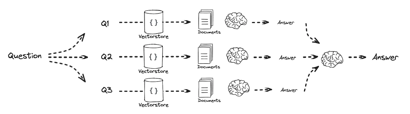 이 Multi-query 를 통해 각각의 document 를 병렬적으로 retrieve 하고 이를 적절한 방식으로 결합하여 LLM에게 전달하는 방식으로 활용할 수 있습니다.