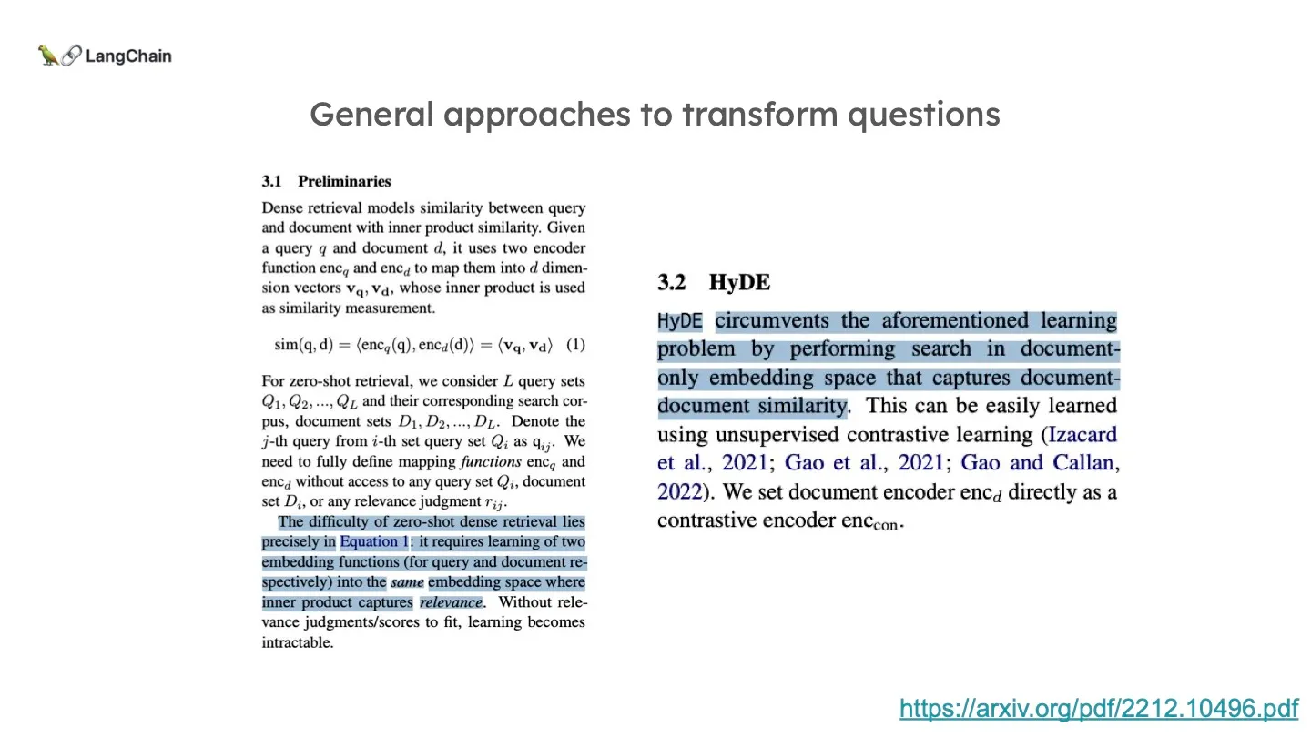 기존 RAG의 Flow는 질문에 대한 임베딩과 문서들에 대한 임베딩에 대해 유사도 검색(Similarity Search) 를 진행하는 방식이었습니다. 그런데 사실 질문 과 문서 는 서로 굉장히 성질이 다른 텍스트입니다. 문서는 질문에 비해 굉장히 많은 chunk로 구성되어 있으며, 질문은 문서에 비해 굉장히 짧으면서도 사용자에 따라 보편적으로 정제되어 있지 않은 문장이기 때문입니다.