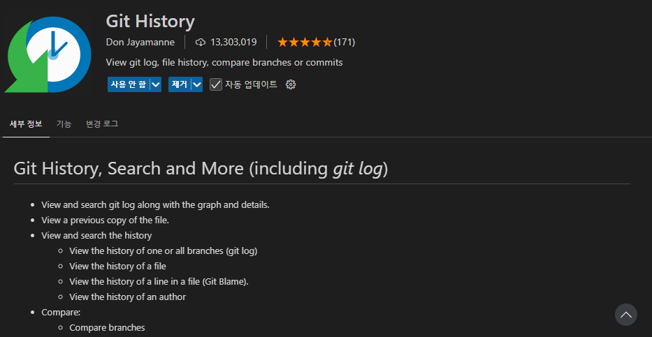 Git History는 VSCode에서 Git 커밋 기록을 쉽게 볼 수 있도록 도와주는 확장 프로그램이다.