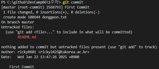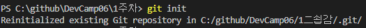 이 명령어를 입력하면 현재 디렉토리에서 Git 저장소가 초기화된다.