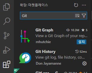 설치가 완료되면, VSCode에서 Git 히스토리를 쉽게 관리할 수 있다.