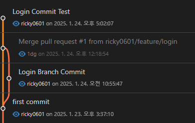 깃허브에서는 주로 브랜치를 병합(추가 브랜치 -> 메인 브랜치)한다.