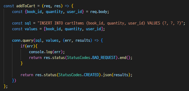 장바구니를 추가하고 삭제하는 기능은 앞서 많이 해봤기 때문에 사용한 코드만 첨부했다.