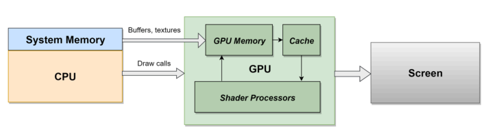 - Input Assembly : GPU는 메모리에서 버텍스 및 인덱스 버퍼를읽고, Vertex가 Tri를 형성하는 방식을 결정 -> 나머지는 Pipeline에 전달