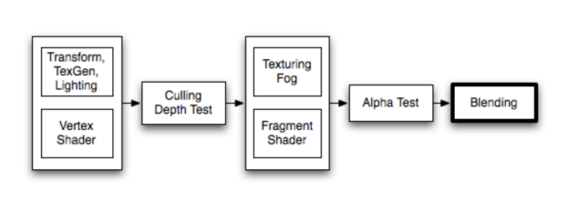 모든 Shader가 실행되고, 모든 Texture가 적용된 후 픽셀이 화면에 작성되게 되며, 이런 Pixel이 기존 Pixel에 결합되는 방법은 Blend Command(Operation)으로 제어하게 됨.