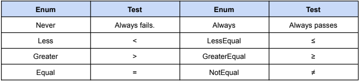 ZTest Less | Greater | LEqual | GEqual | Equal | NotEqual | Always
