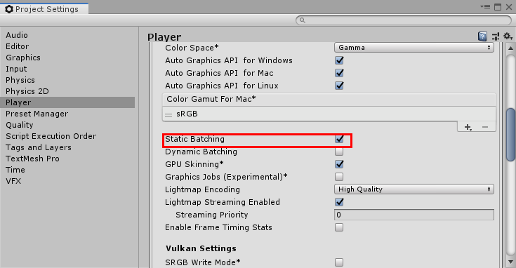 - GameObject의 Static 옵션을 활성화하면 자동 적용