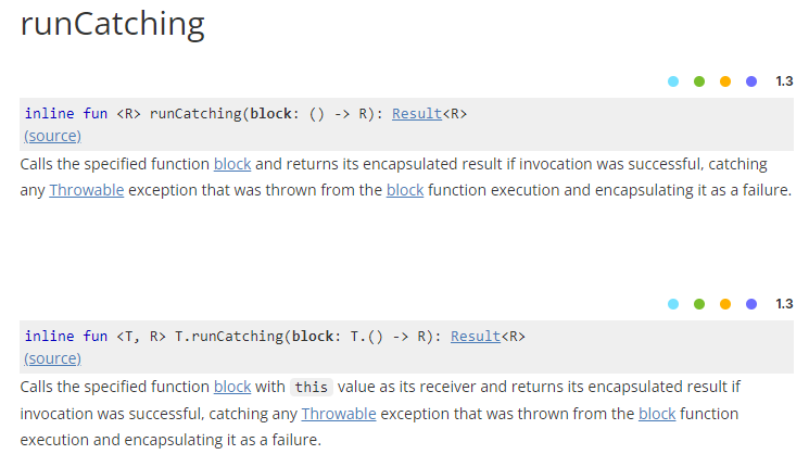 참고자료1, 참고자료2 runCatching 블록 안에서 성공/실패 여부가 캡슐화된 Result 형태로 리턴된다.