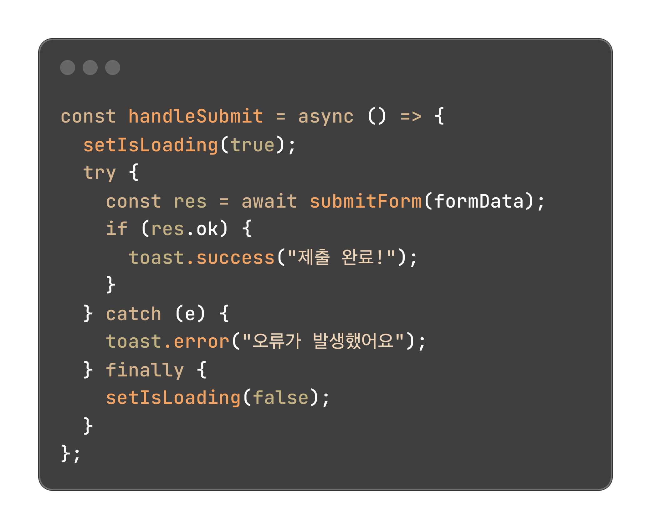 isLoading 상태를 통해 사용자에게 피드백을 제공하고 finally 블록을 활용해 성공 여부와 관계없이 항상 로딩 상태를 해제함으로써 UX 품질을 안정적으로 유지할 수 있어요.