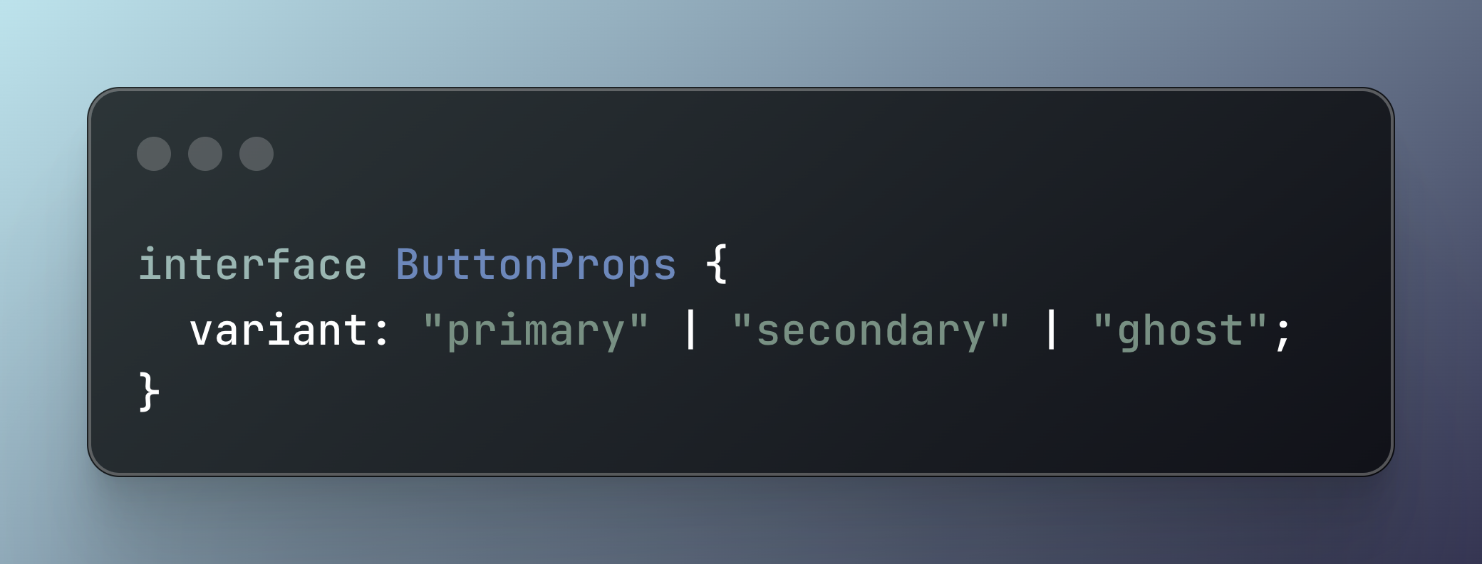 예를 들어 버튼의 variant처럼 특정 문자열 값 중 하나를 선택해야 하는 경우 다음과 같이 정의할 수 있습니다