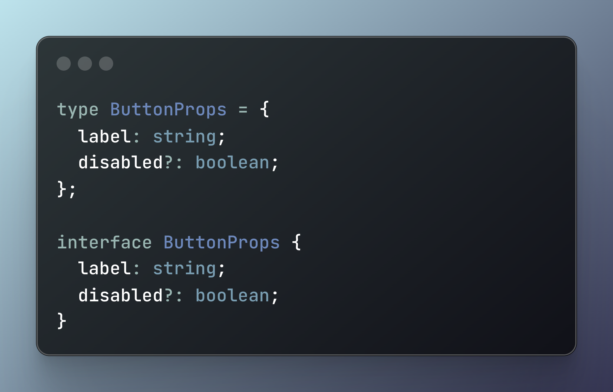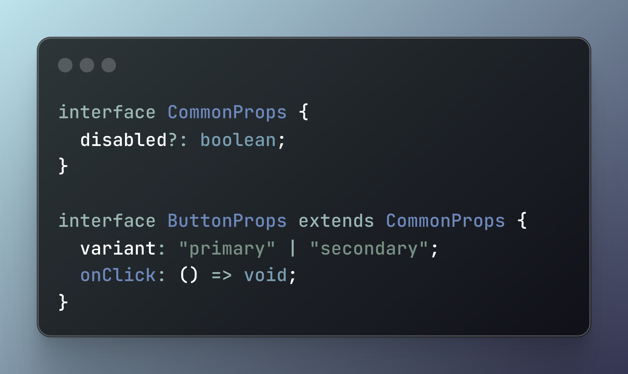 CommonProps와 같이 여러 컴포넌트에서 공통으로 사용하는 속성을 정의하고 ButtonProps와 같이 개별 컴포넌트의 고유 속성을 덧붙이는 계층적 구조에서는 interface의 extends 키워드를 사용하는 방식이 더 직관적이고 선언적으로 읽혀요.