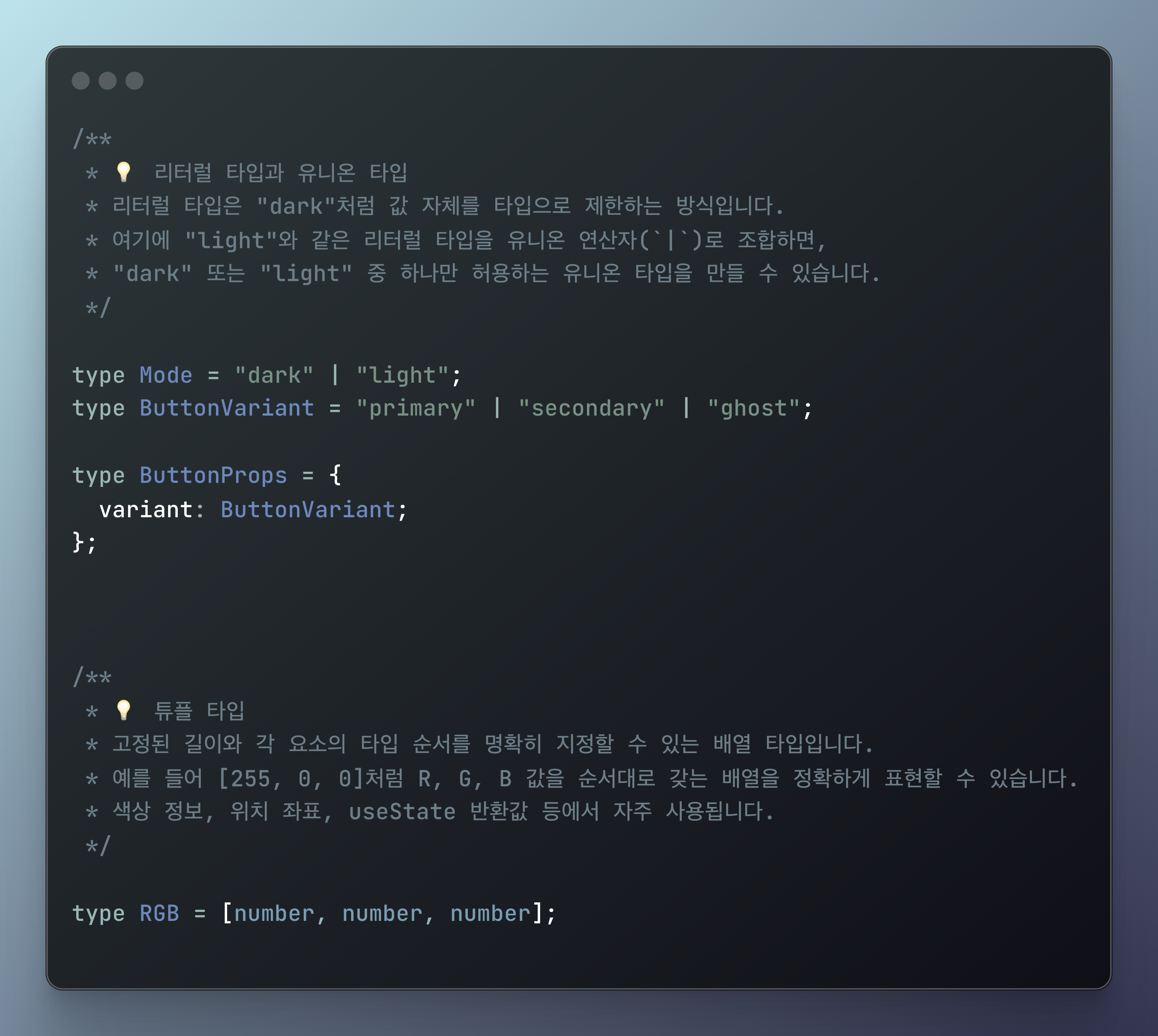 type의 & 연산자를 통해 동일한 타입 구조를 만들 수는 있지만 조합이 중첩될수록 타입 간의 관계가 복잡해지고 전체 구조나 의도를 직관적으로 파악하기 어려워질 수 있어요!