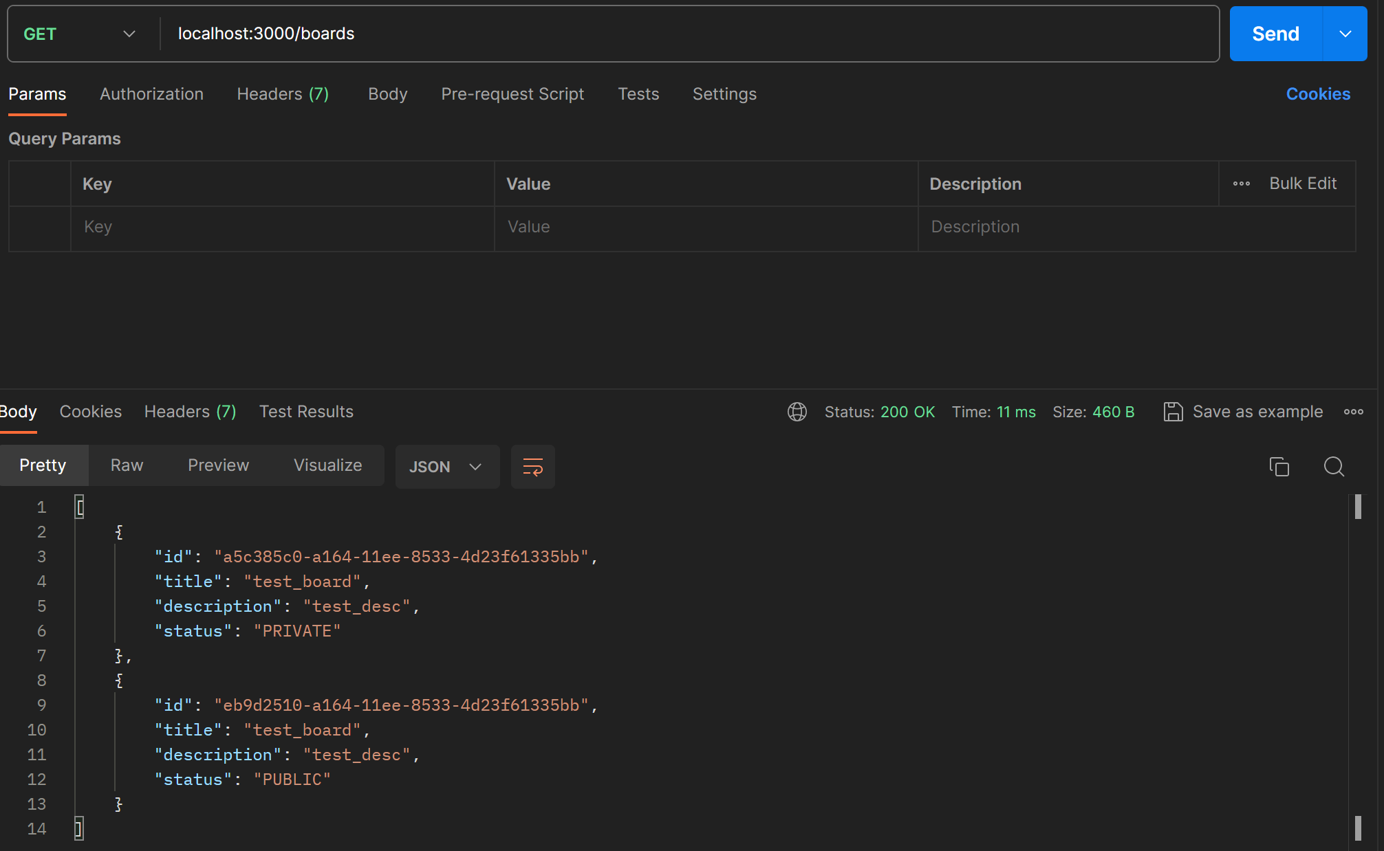 /boards에 접속해서 확인해도 되고, postman을 사용해도 된다.