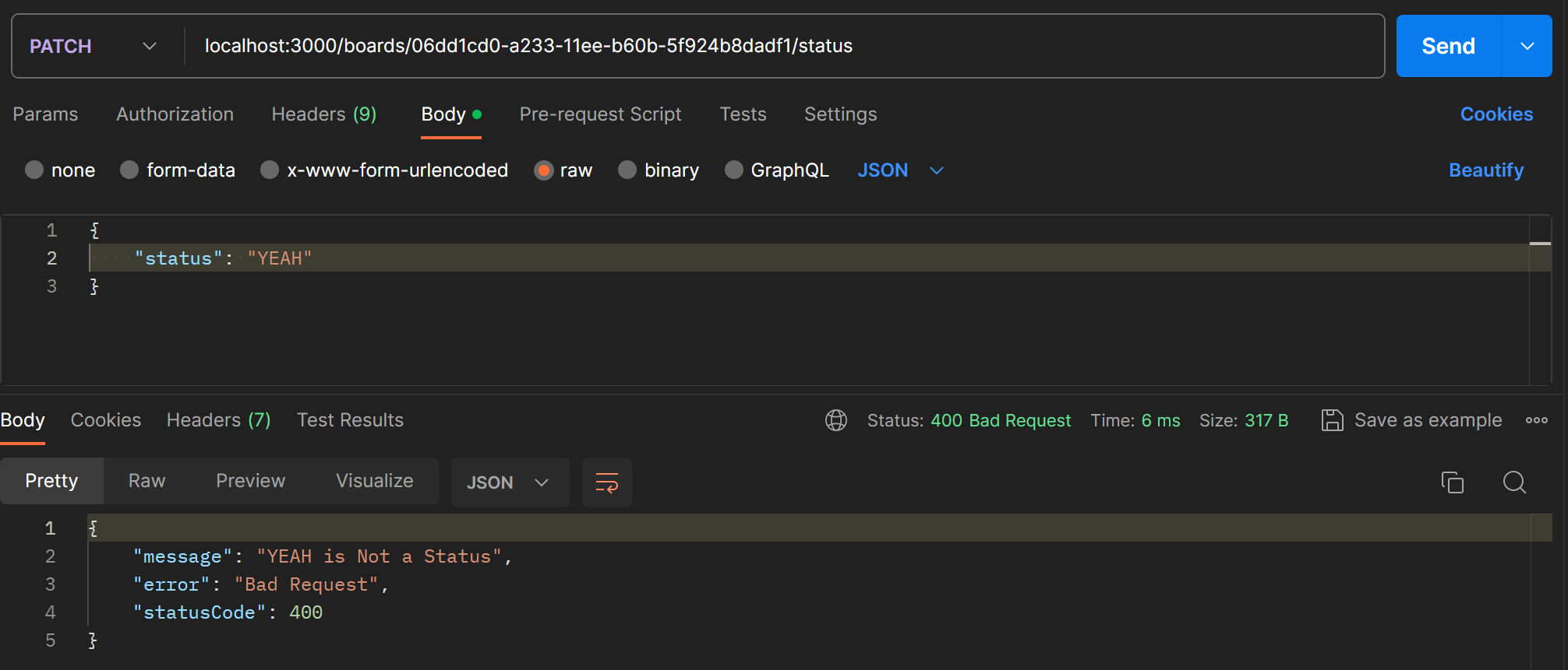 throw new BadRequestException(`${value} is Not a Status`)