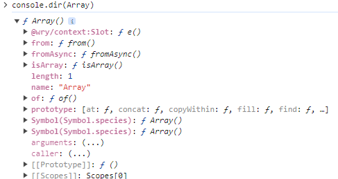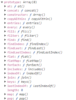 예를 들어 Array의 prototype을 살펴보자. 생성자 Array 속에 prototype이 들어있다.