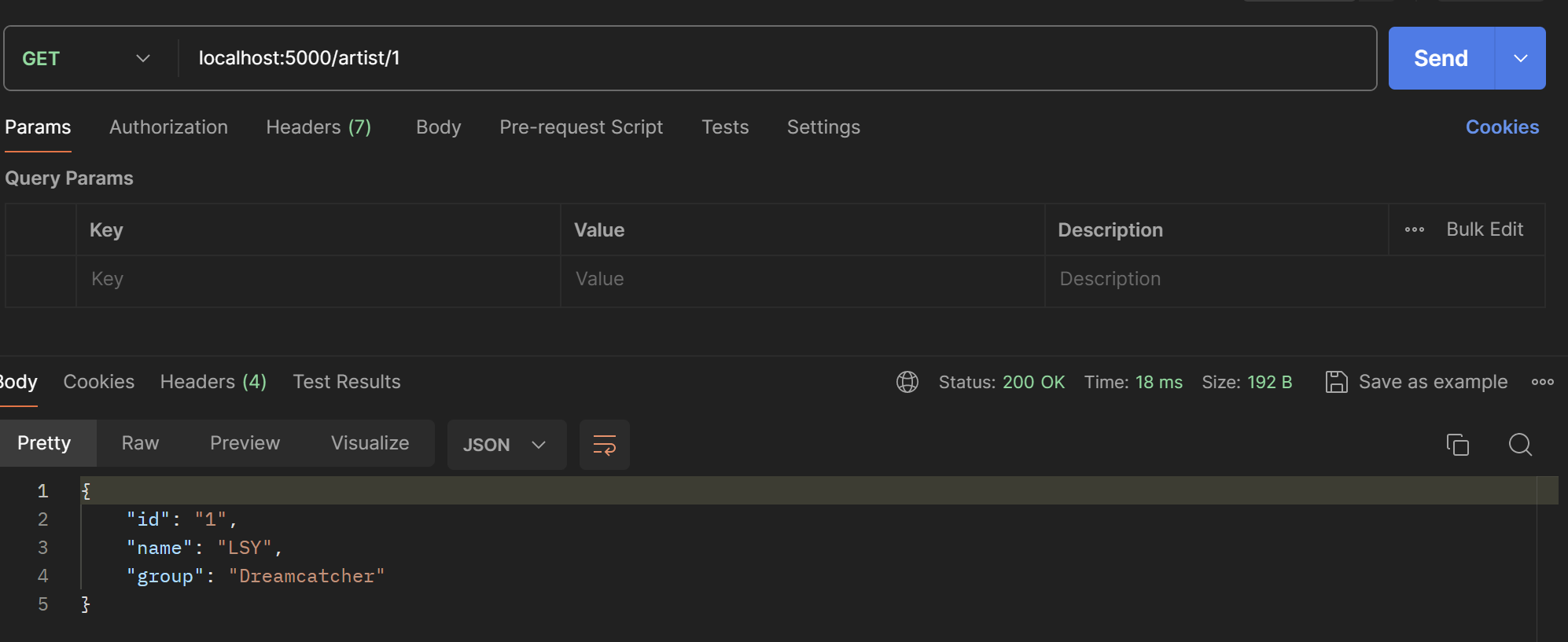 이제 id를 파라미터로 artist 하나씩 요청해보자.