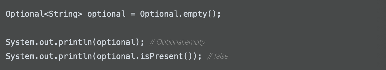 -> 물론 이렇게 쓰는 경우 사용시에도 .orElse()등을 통한 대책을 세워줘야한다.
