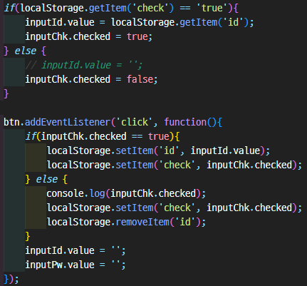 localStorage.setItem('id', inputId.value); inputId.value = localStorage.getItem('id');