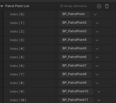 스테이지가 랜덤으로 조립되어 크리쳐들의 패트롤을 어떻게 할 지 고민하던 찰나에, 순찰 포인트를 담당할 액터들을 설치해두고 각 크리쳐들이 해당 액터들의 위치를 받아와서 순찰하면 좋을 것 같다는 생각이 들었다.