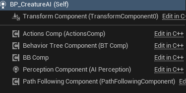 (AI Controller 클래스와 Creature Class는 C++로 작성하였고, 추가 설정은 블루프린트로 설정함)