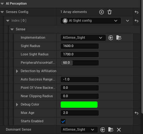 AI Perception을 AI Controller에 부착하고, 감지할 감각은 Sight로 설정