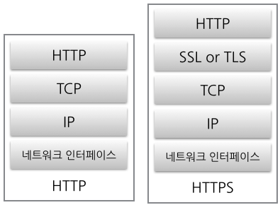 HTTP는 클라이언트와 서버 사이에 암호화되지 않은 방법(평문)으로 데이터를 통신하기 때문에 감청 혹은 데이터 변조의 위험이 존재한다. 따라서 보안을 강화하기 위해 하부에 SSL 계층을 두어 네트워크로 보내지는 모든 HTTP 요청을 암호화하는 HTTPS 방식이 도입되었다.