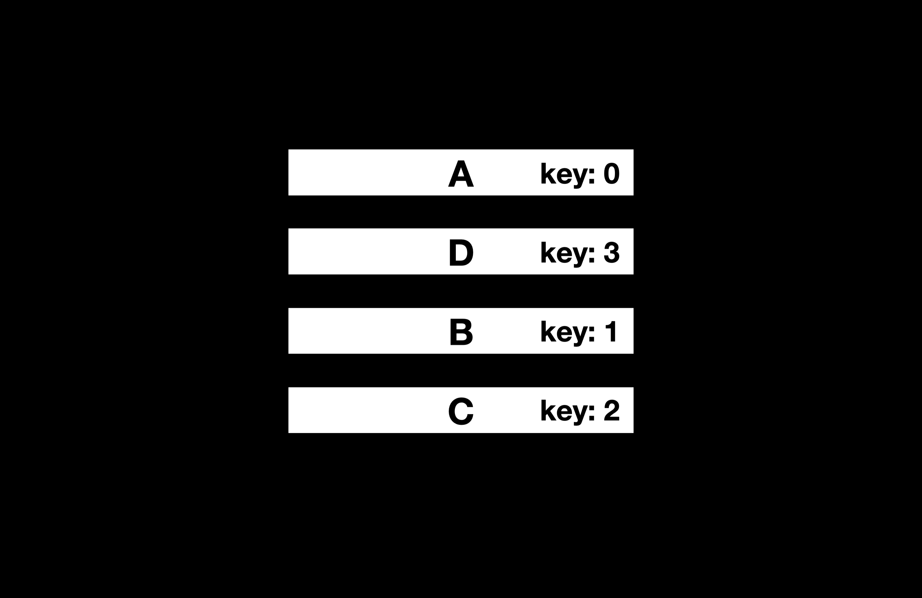 D의 key 값으로 1이 할당되고 B, C의 key 값이 각각 1에서 2로 2에서 3으로 변경되었다